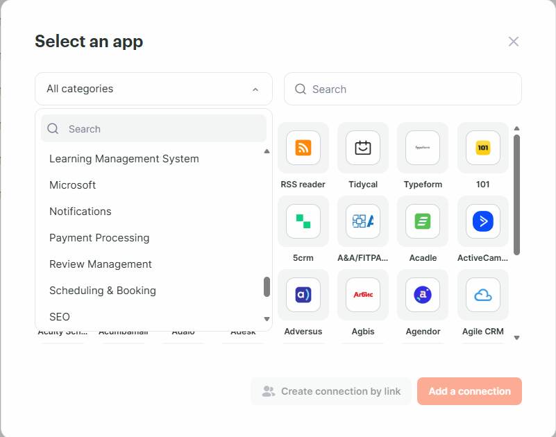 Albato supports integrations with popular apps across every category: CRM (Salesforce, HubSpot, Pipedrive), project management (Asana, Trello, Monday.com), email (Gmail, Outlook), e-commerce (Shopify, WooCommerce), and many more.